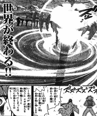 世界を終わらせる儀式が発動したシーンですが、これは完全魔法消去が母体となった儀式魔法であると提示されています。